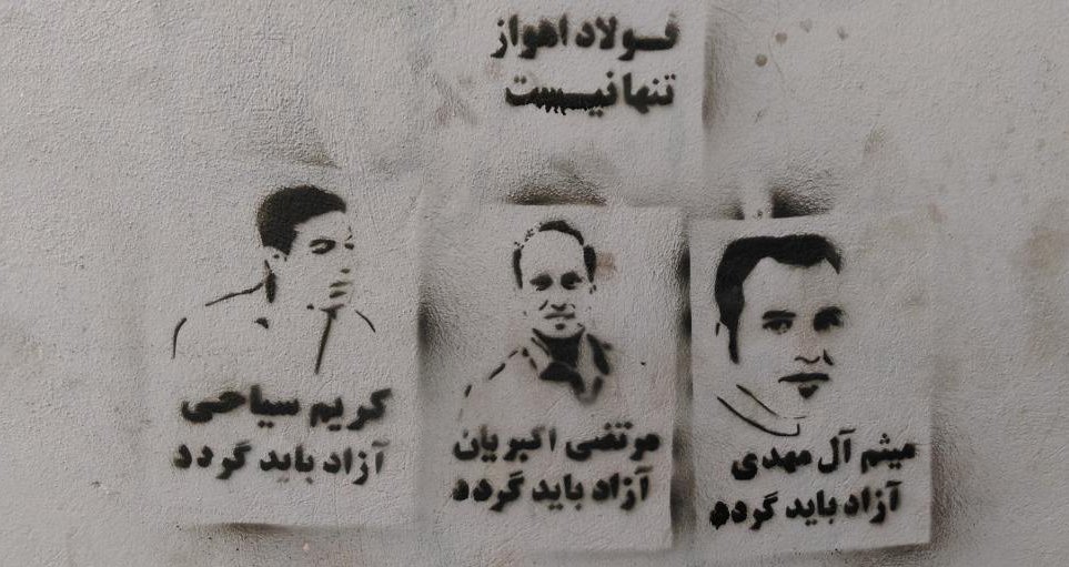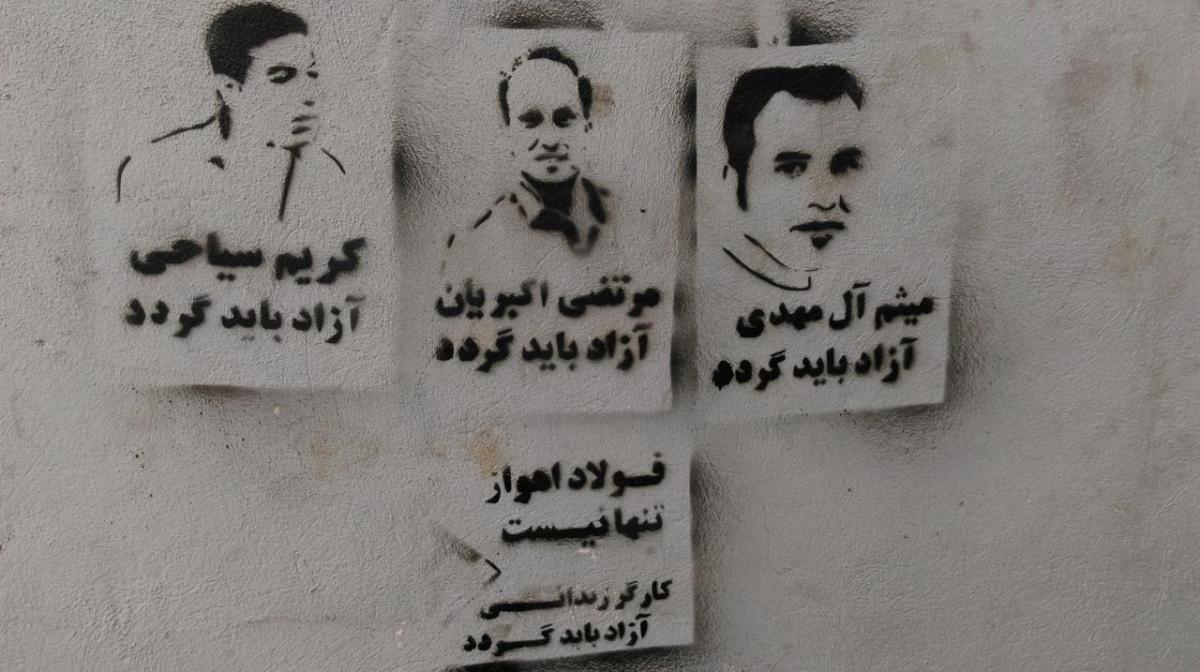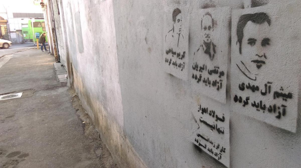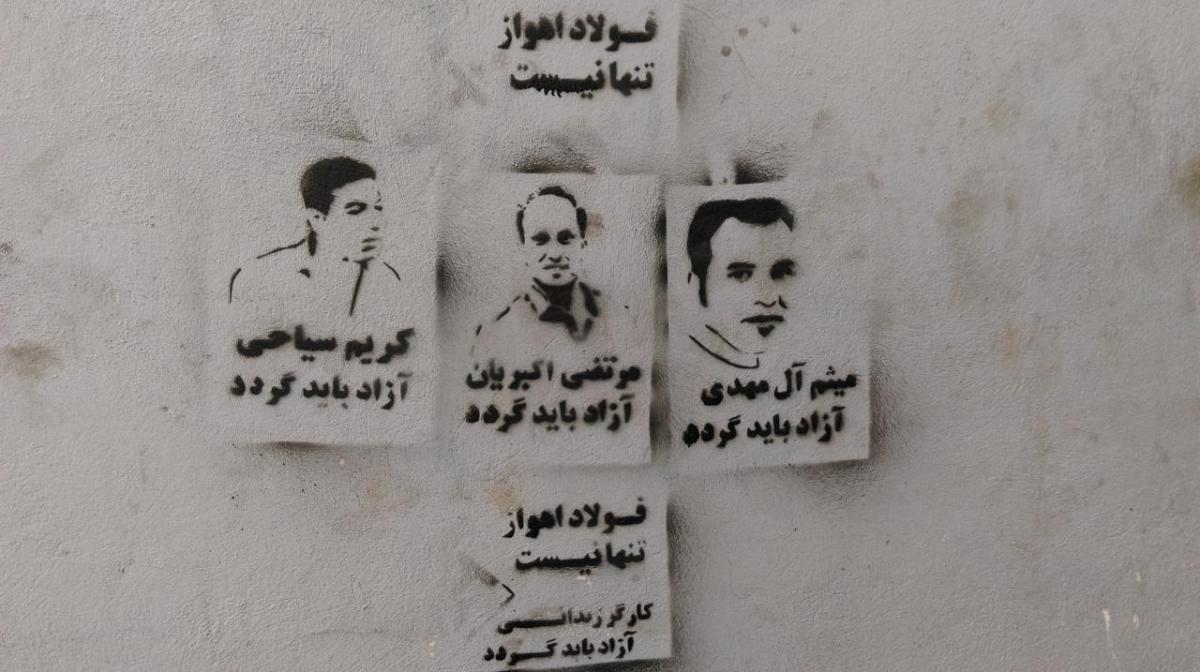 گرافیتی‌های حمایتی از کارگران زندانی فولاد اهواز